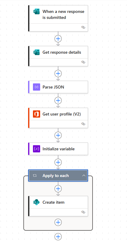 Designed a Power Automate flow that captures responses from a Microsoft Form, processes the data, and stores it in a centralized Excel file on SharePoint for easy access and reporting.